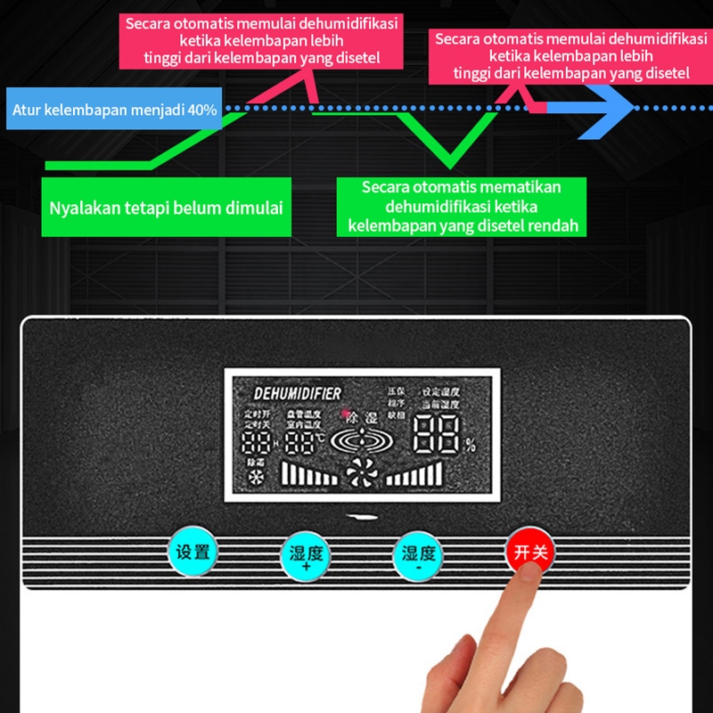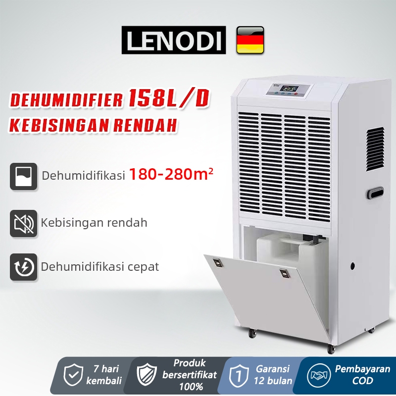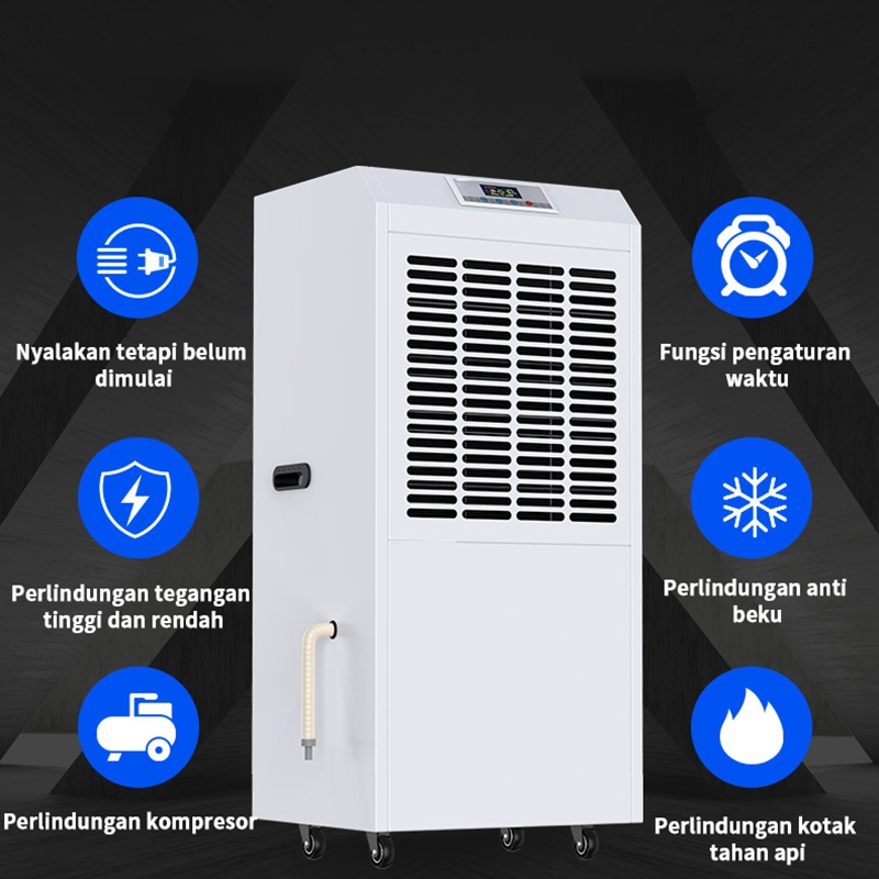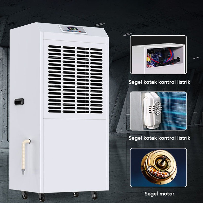 LENODI Dehumidifier 158l Daya Tinggi Pencairan Es Kontrol Kelembaban Pengatur Waktu Lembaran Logam Otomatis Dehumidifier Bengkel Gudang Tahan Air