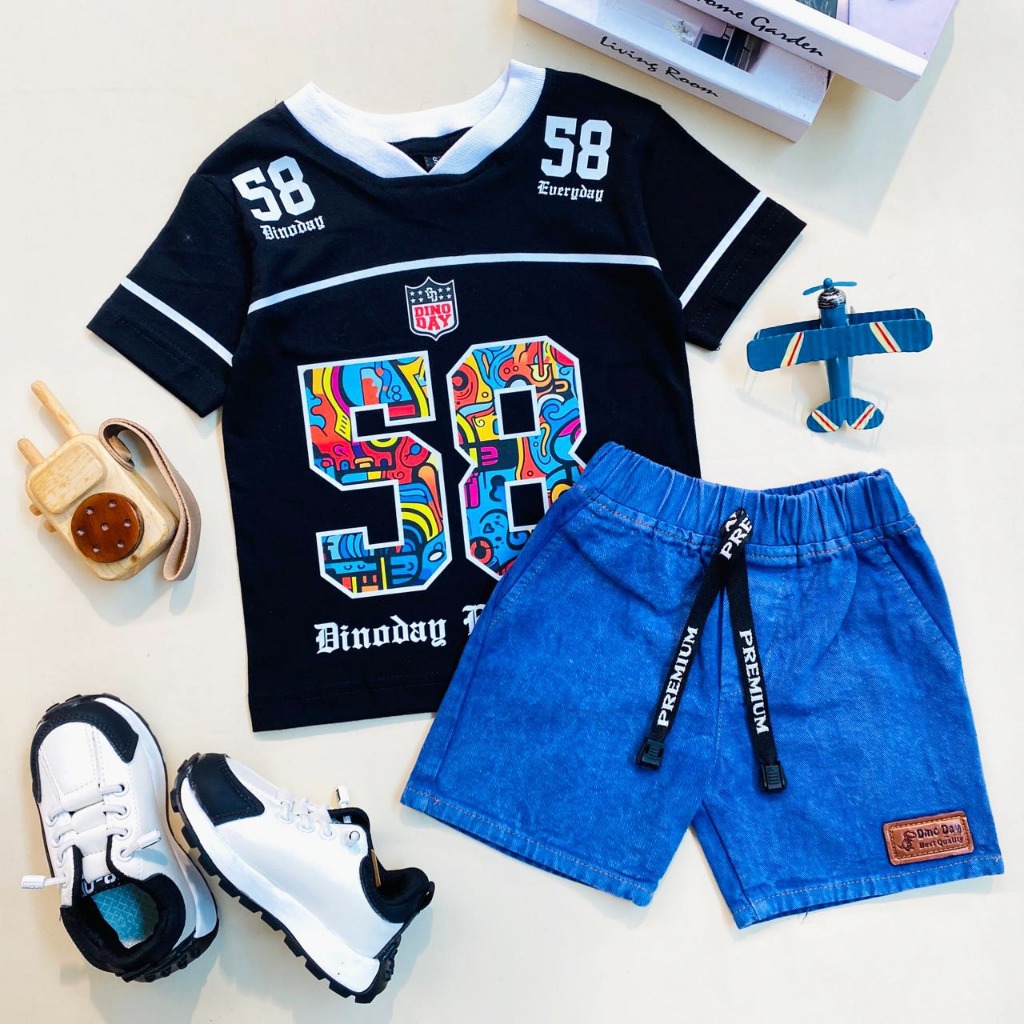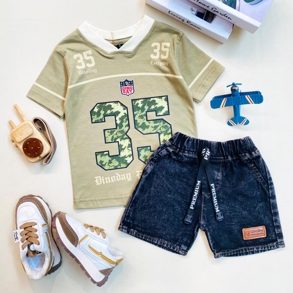 [Star] ESTISHOP X DINODAY Setelan Kemerdekaan 17 Agustusan Baju Anak Laki Laki Celana Cargo 1-9 Tahun