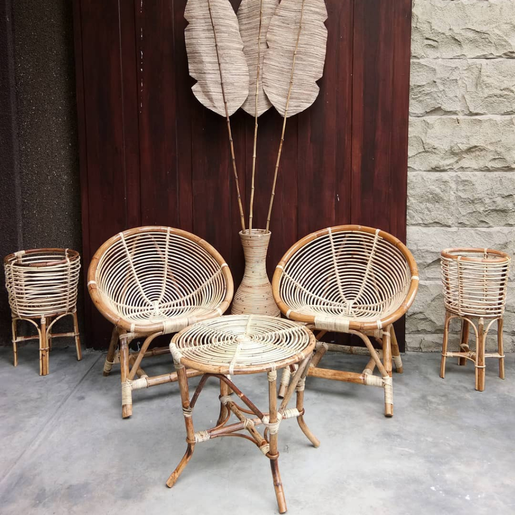 Kursi Teras Kerang Rotan Natural Free Bantal Duduk Minimalis Indoor Dan Outdoor