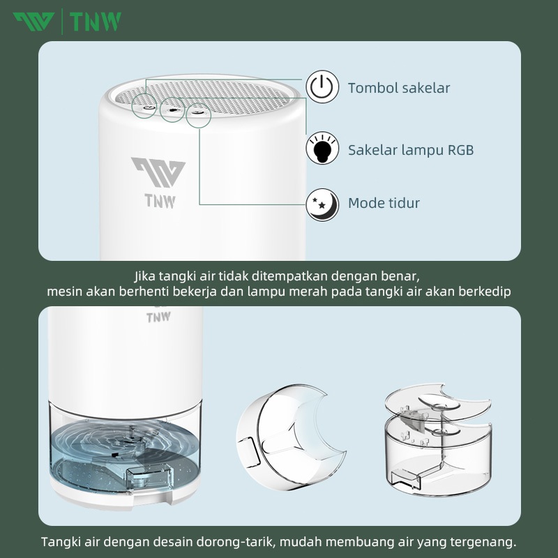 TNW HD10 Dehumidifier 1L Air Dryer 2 In 1 Air Purifier Portabel Dehumidifier Serap Air Penyerap Kelembaban Udara Dryer