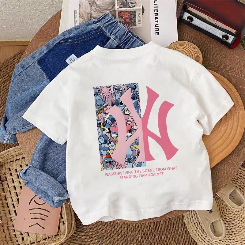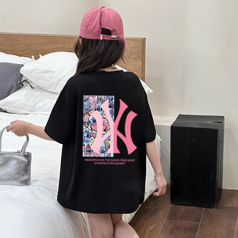 [Star] Kaos anak|cewek 10 tahun import|2-12 Tahun|kaos Cetakan Kolaborasi Stitch & MLB|korea style premium baju atasan|K