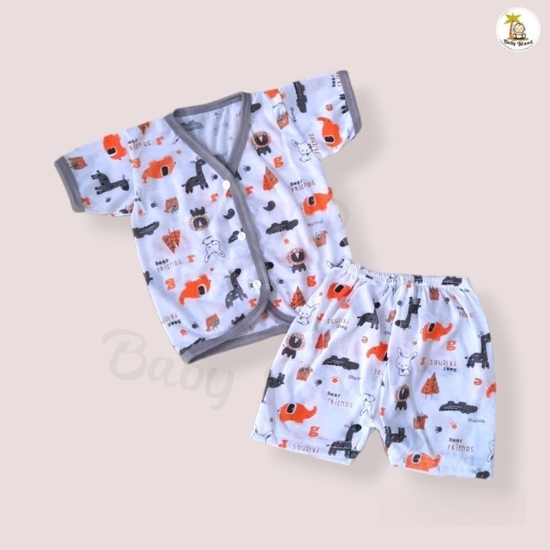 SETELAN BAJU BAYI LENGAN PENDEK 0 3 BULAN LAKI PEREMPUAN / PIYAMA BAYI BAJU TIDUR CELANA BAYI NEWBORN BARU LAHIR KATUN MOTIF WARNA