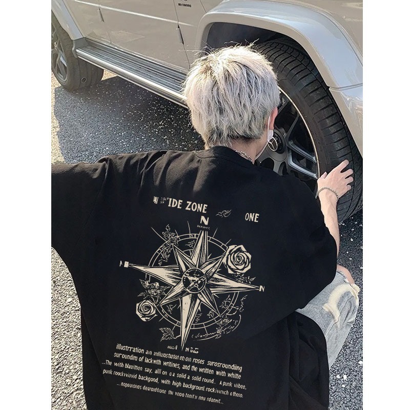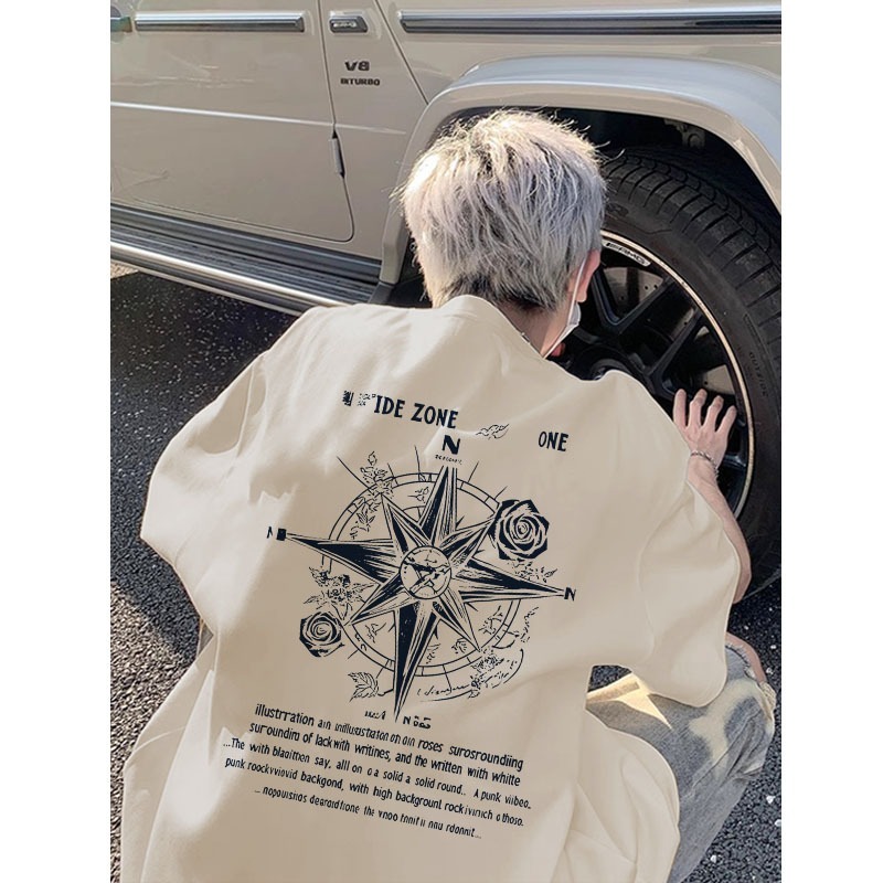 AUZY Bintang segi delapan pencetakan Gaya Amerika kecenderungan jalan kaos pria wanita atasan Lengan Pendek T-shirt skena baju oversize t shirt distro original 100 PERSEN 7.9
