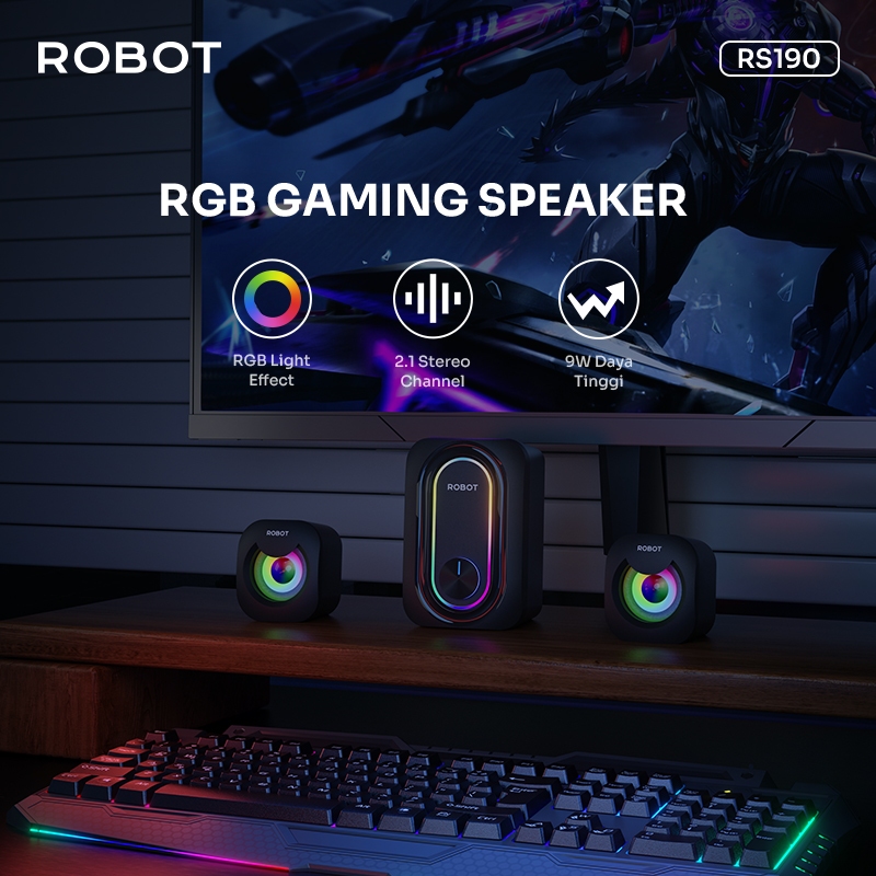 ROBOT Speaker Komputer GamingSuper bass RS190 Speaker Gaming Soundbar RGB Light Dynamic Effect Original Garansi 1 Tahun