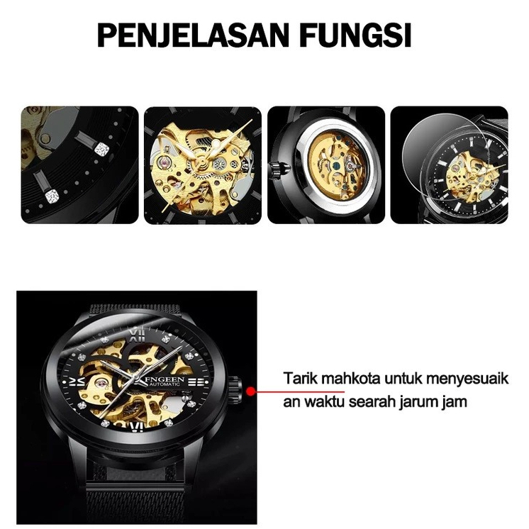 FNGEEN 6018 Jam Tangan Pria Automatic Mechanical Quartz Anti Air Stainless Steel Watch+Kotak Gratis