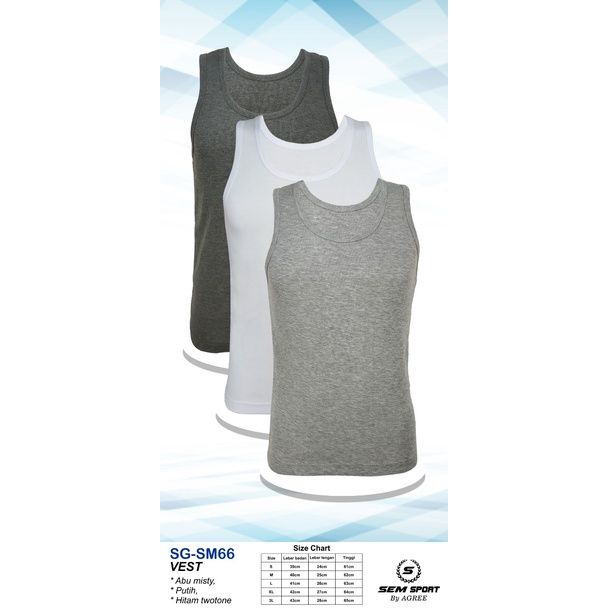 GROSIR Kaos Dalam Singlet Pria SEM SPORT SM66 By Agree Bahan Katun ( Size M - XXL ) icalk