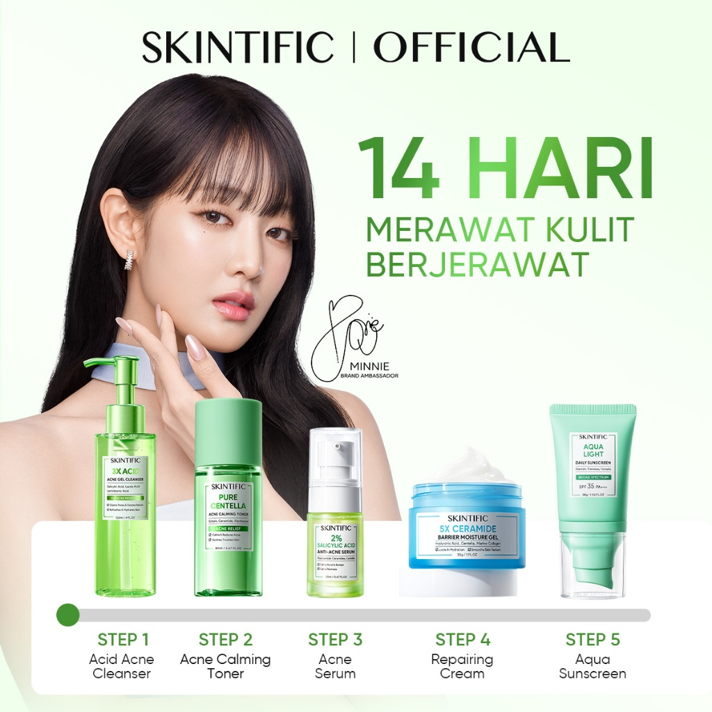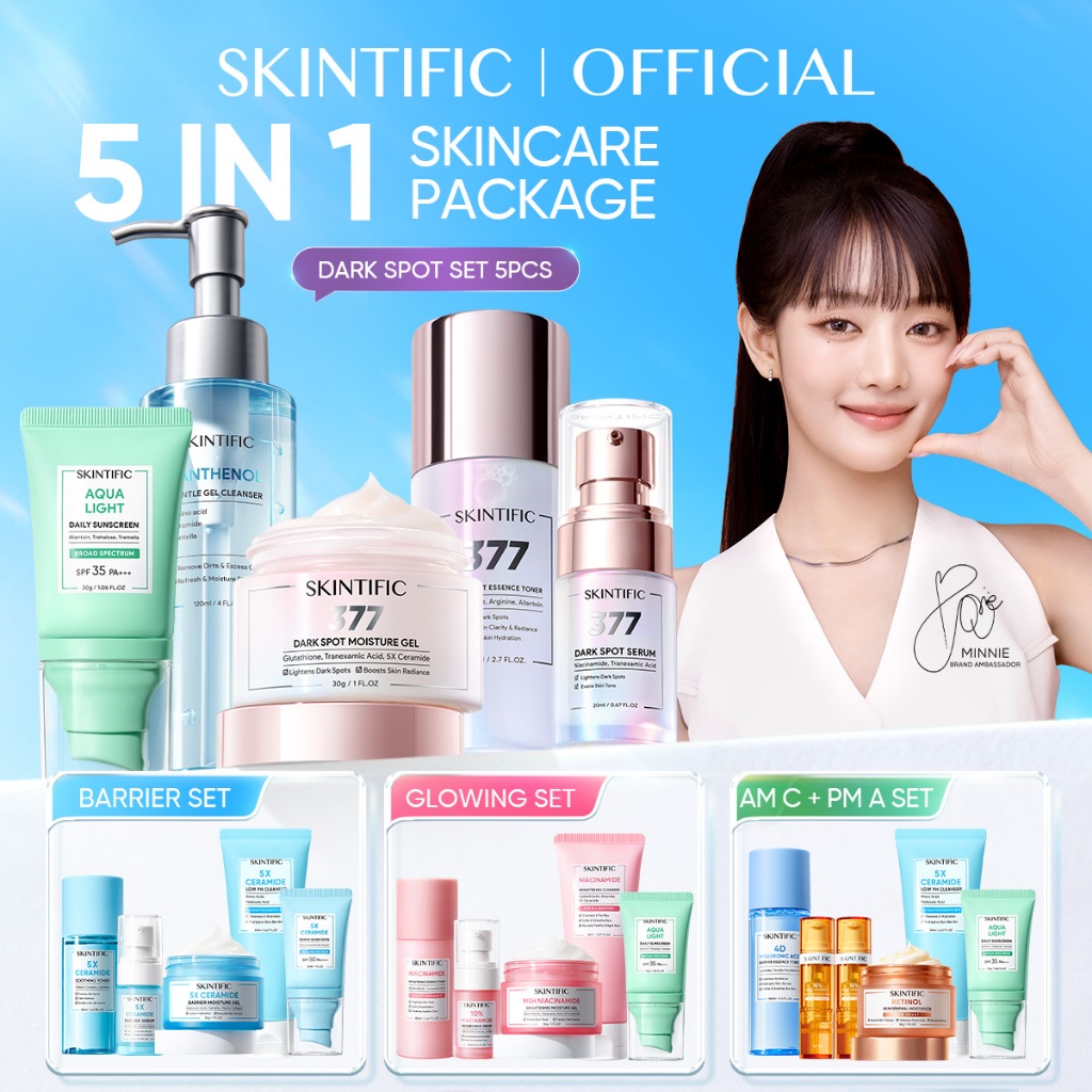 SKINTIFIC 5 PCS Series Skincare Set | 5X ceramide Serum Moisturizer Gel Toner Sunscreen Cleanser Mousse Facial Wash Day