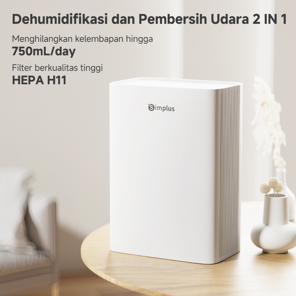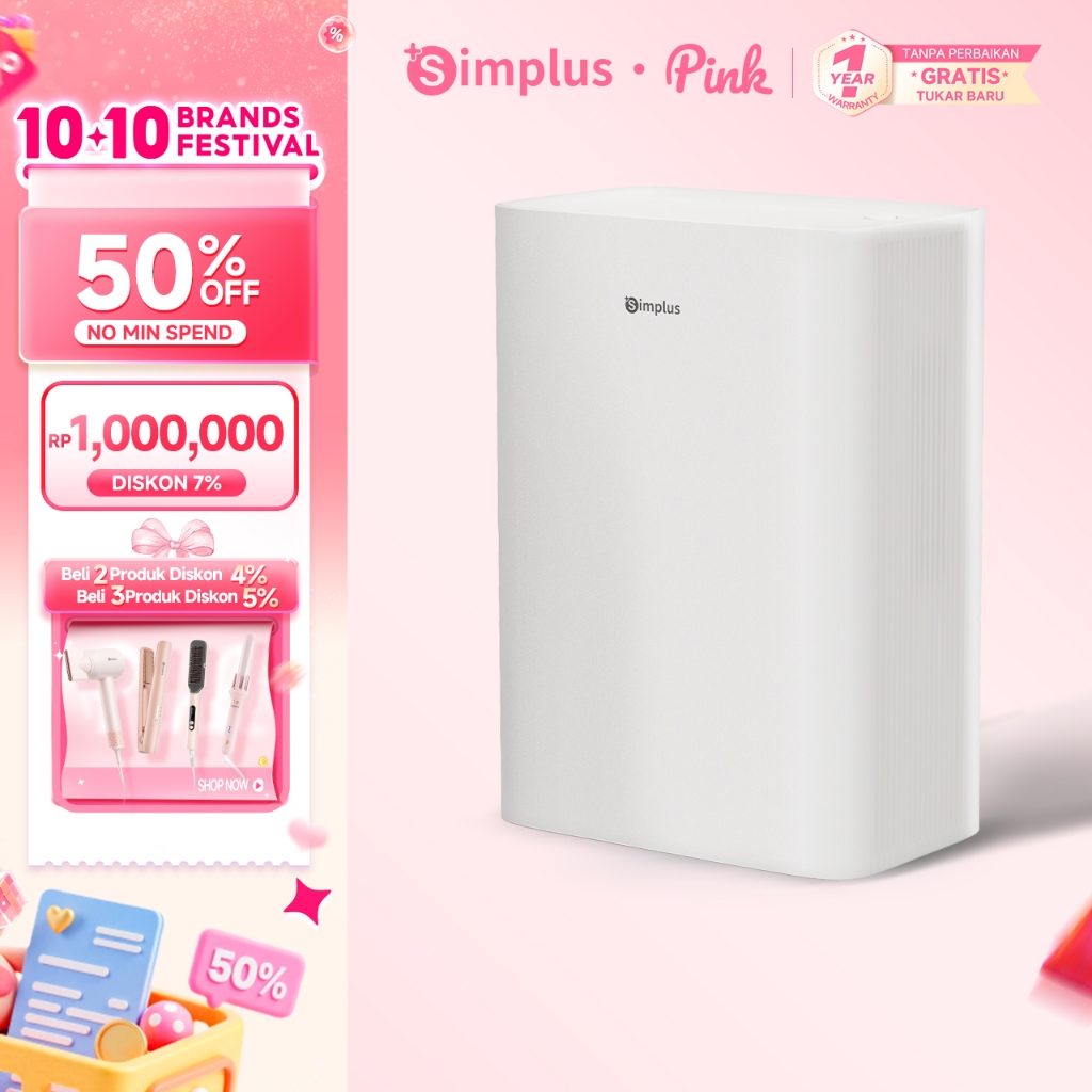 Simplus pink Dehumidifier &Air Purifier 750ml/Hari 2in1 untuk Penggunaan Rumah