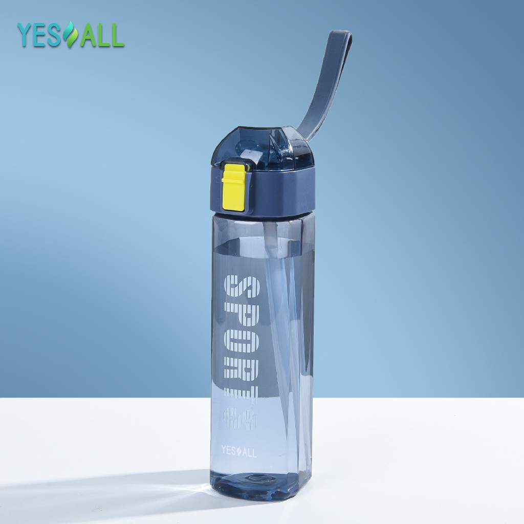 YESALL 650ml Botol Minum Transparan - Tutup Flip Thumbler Warna Transparan Infuse Water Bottle Infuser Olahraga SH004