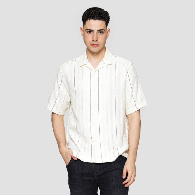 Cole Stripe Weaving Kemeja Lengan Pendek Pria 122721654