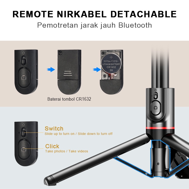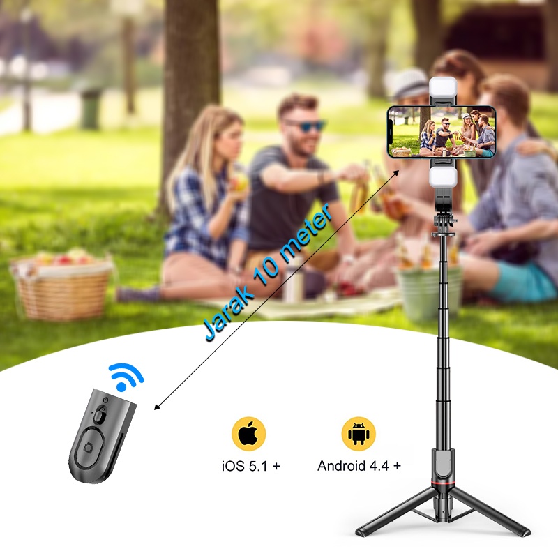 .Tripod Selfie Bluetooth L12d with LED Flash Phone Stand 108.5CM Fill Light