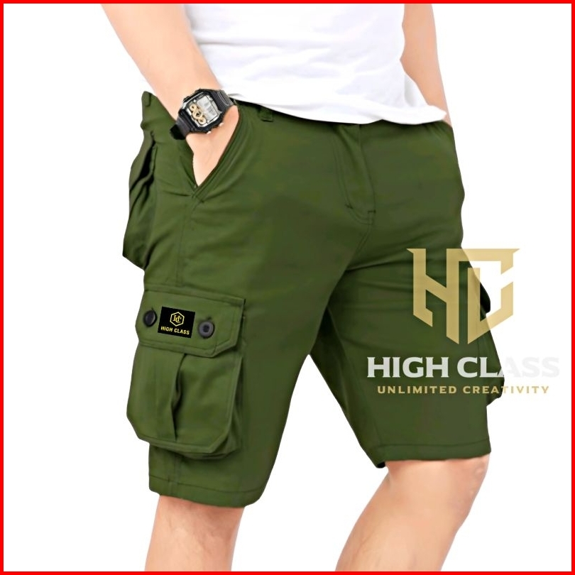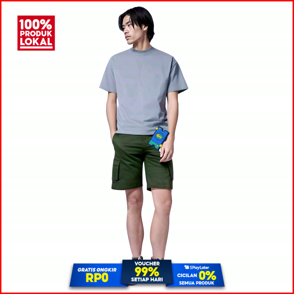 Celana Cargo Pendek Pria Gaya Santai Kantong Tempel Elegant