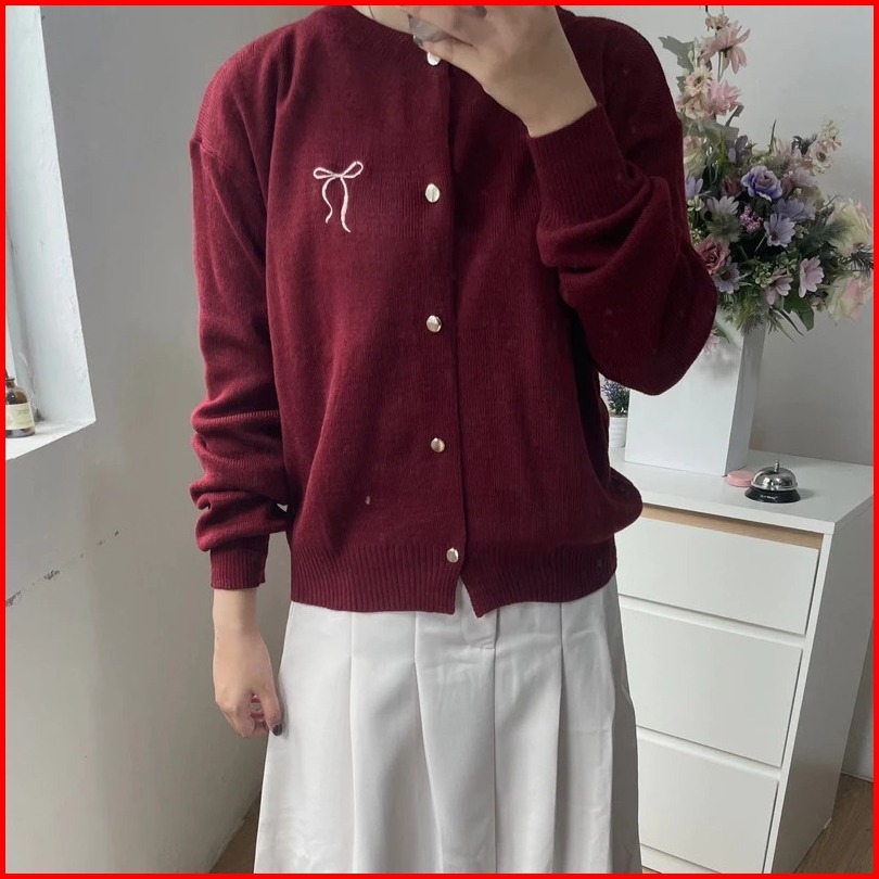 Cardigan Rajut Naomi Pita Korean Style - Cardigan Pita Polos - Cardigan Ribbon Coquette