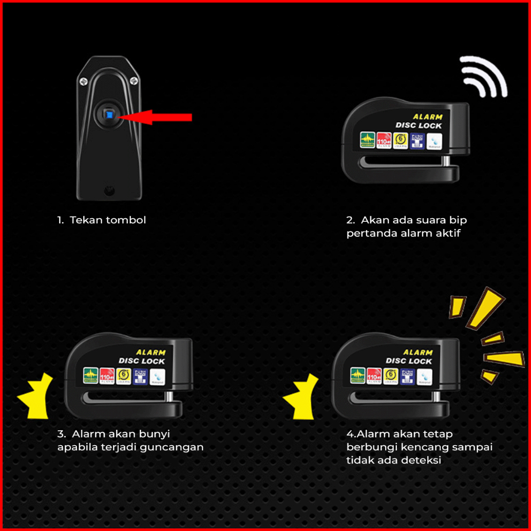 Alarm Disc Lock Motor Pengunci Rem Cakram Bahan Metal Gembok Pengunci Rem Cakram Motor Waterproof