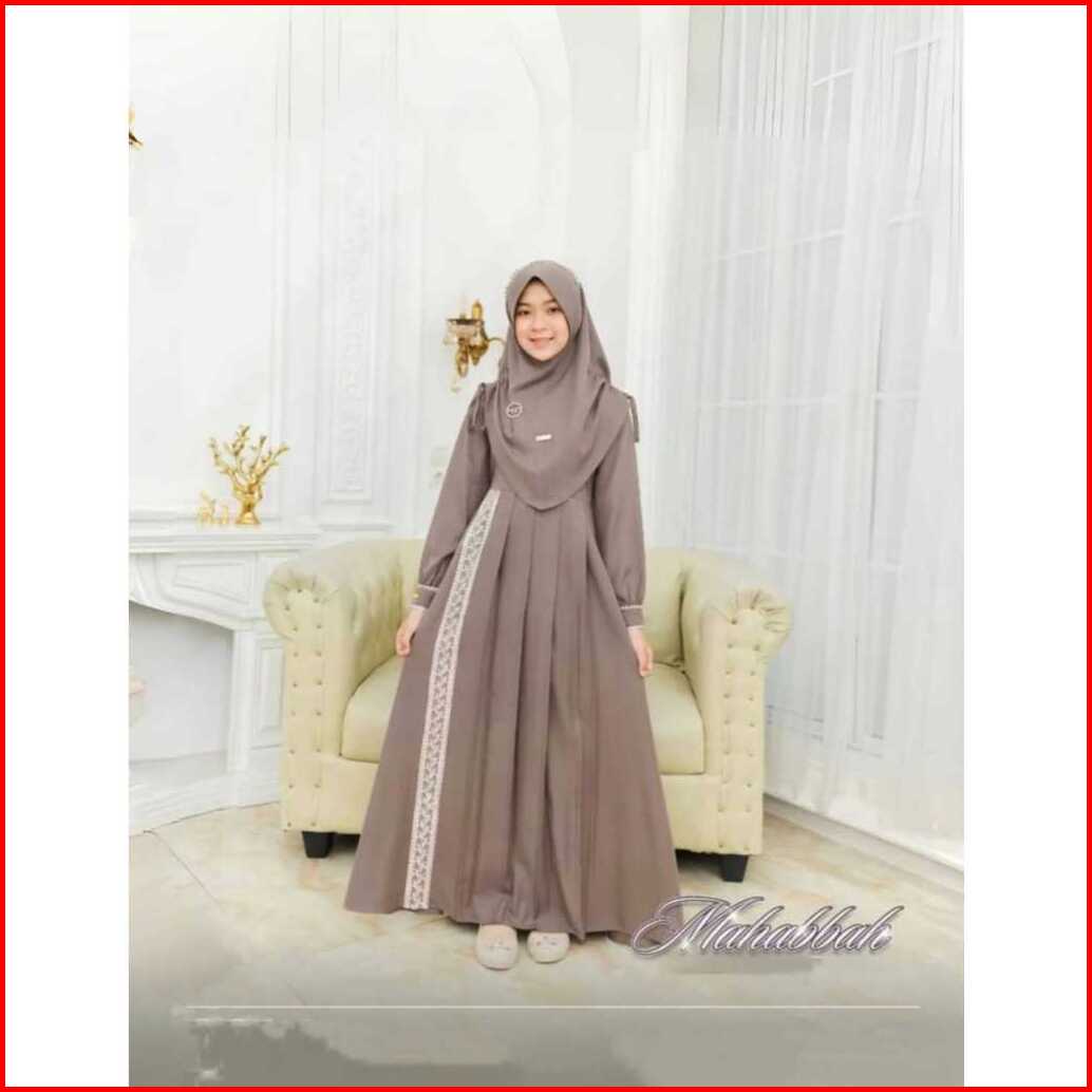 Gamis Muslim Anak Perempuan Usia 7-15 Tahun Padma Syari Kids Bahan Crinkle Airflow Mix Brukat Baju Pesta Dress