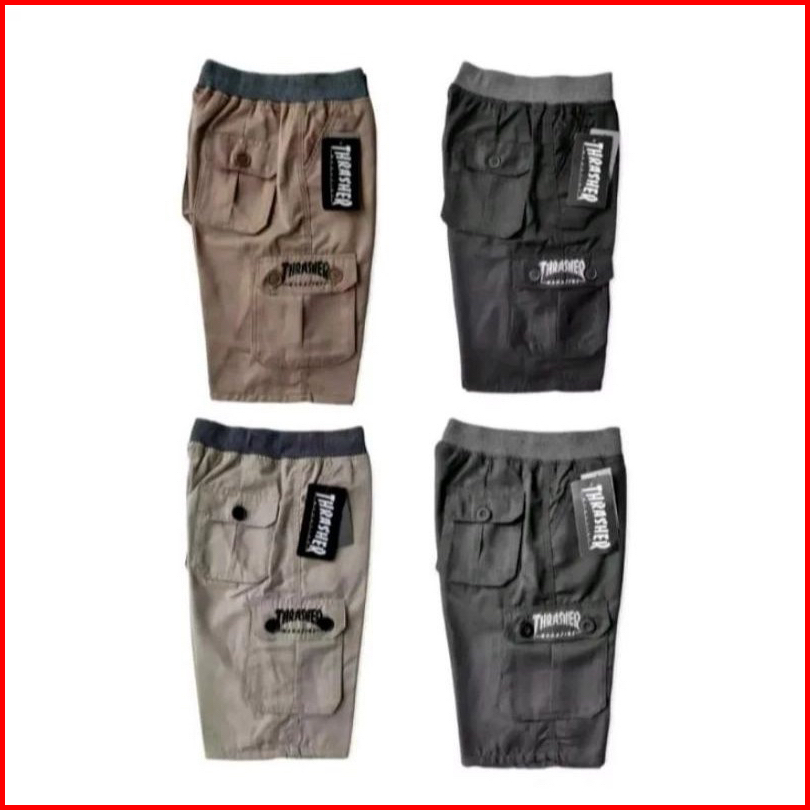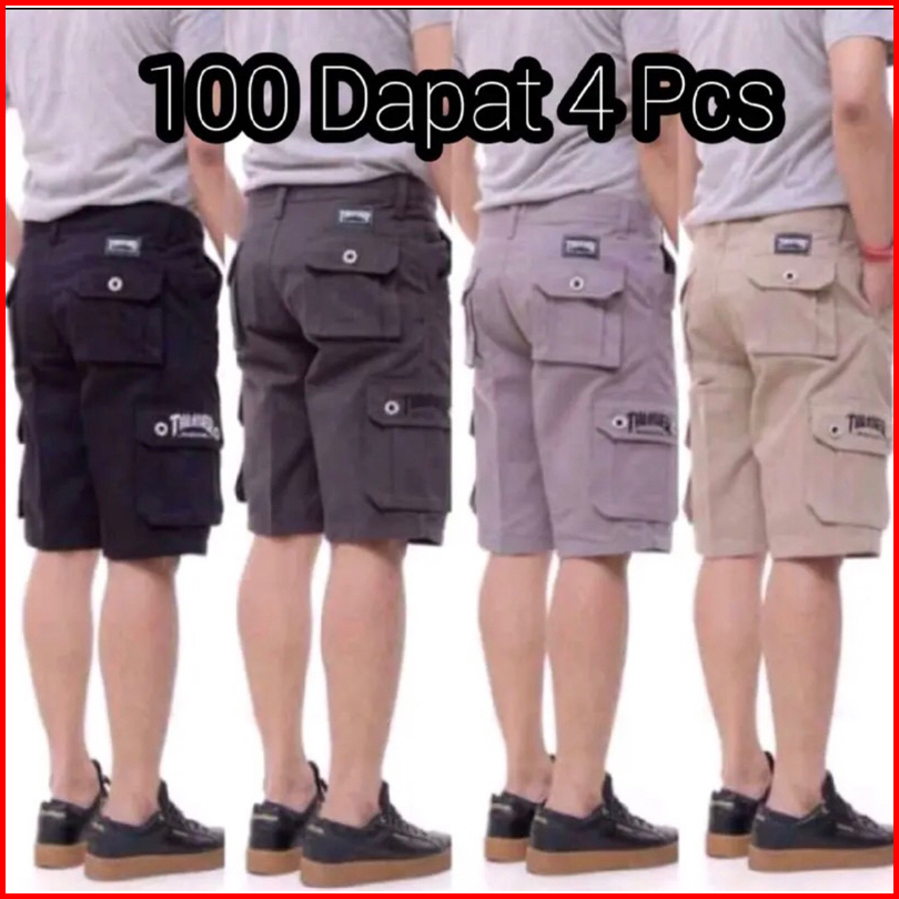 Promo 100ribu Dapat 4 Celana Pendek Cargo Pria Polos Rip Pinggang Karet Allsize 27-34 Termurah Terlaris