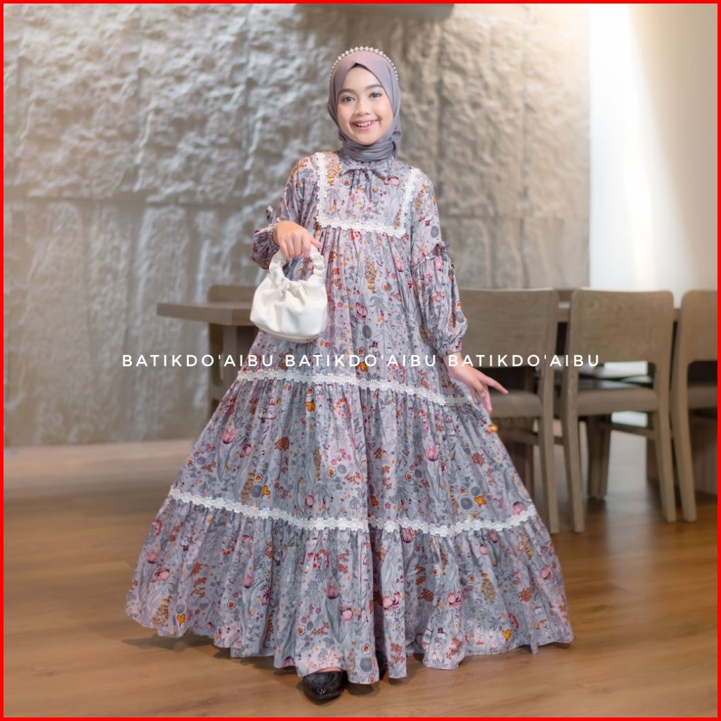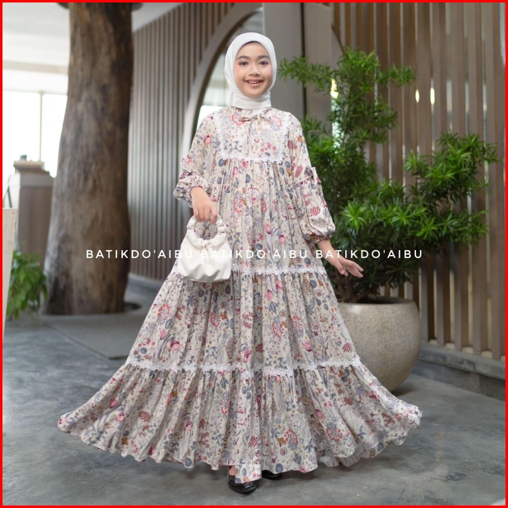 Hayvana Gamis Anak Renda Dress - Gamis Rempel Renda Gamis Susun Lengan Balon Pita Gamis Rayon Premium