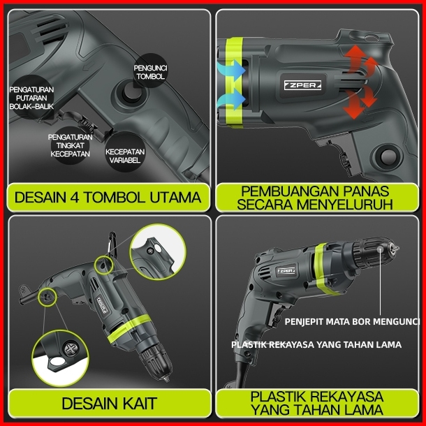 Zper Mesin Bor 350w Listrik Bolak Bali Hand Electric Drill Berlaku Untuk 2-10mm Mata Bor Zp044