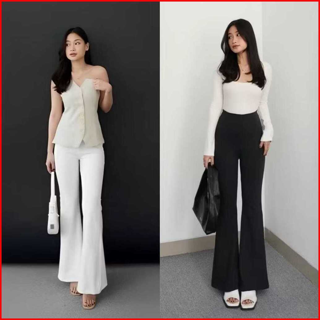 Flare Pants Scuba High Waist - Celana Scuba Panjang Cutbray Celana Kerja Wanita Terbaru Hn-06 Celana Cutbray Wanita Scub
