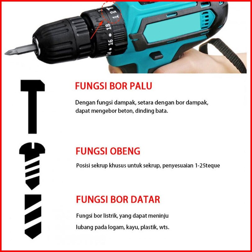 Maklta 388v Mesin Bor Cordless Bor Baterai Bor Listrik Beton Besi Kayu Baterai Tangan Cordless Drill Battery Impact Dril