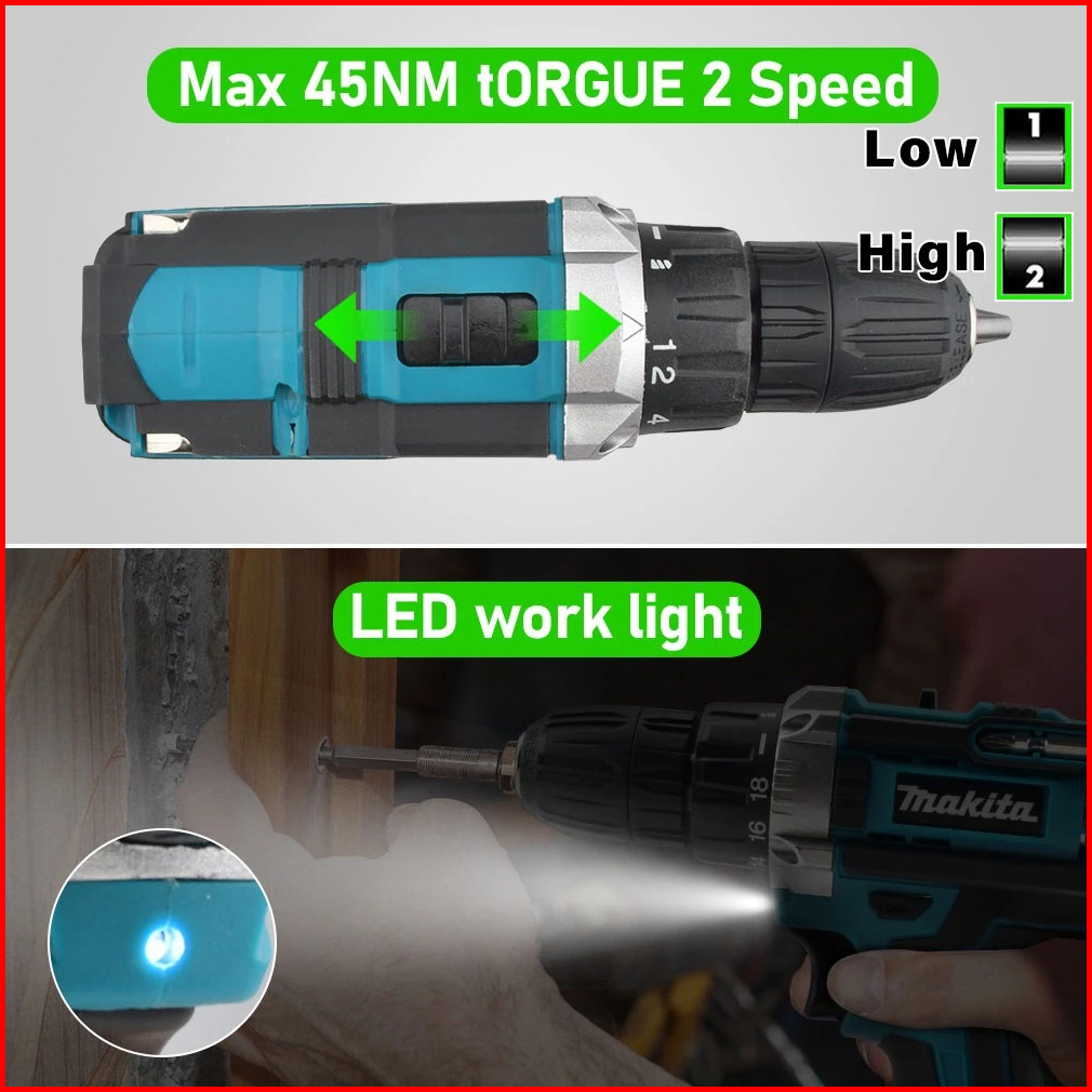 Makita 766v Mesin Bor Baterai Tangan Cordless Drill 21vf Bor Baterai Bor Listrik Bor Tanpa Kabel Mesin Cordless Screwdri