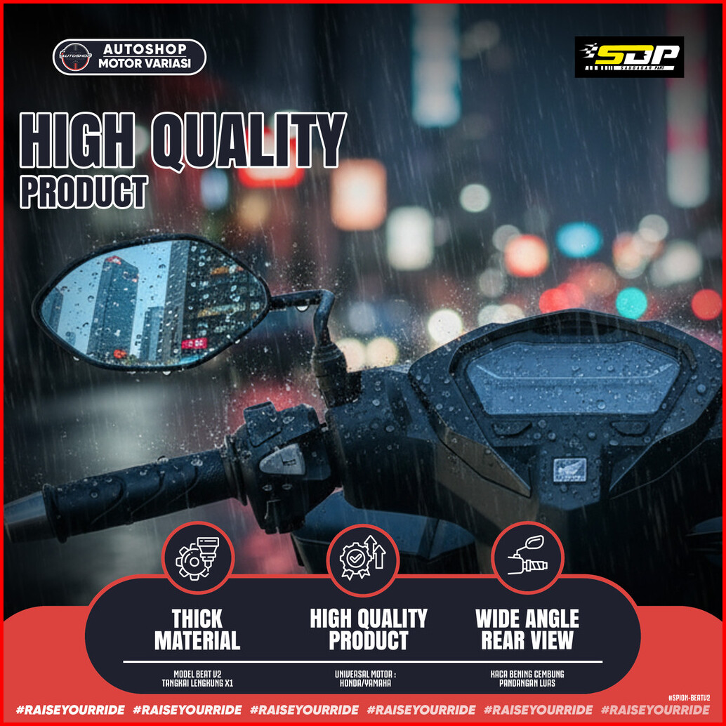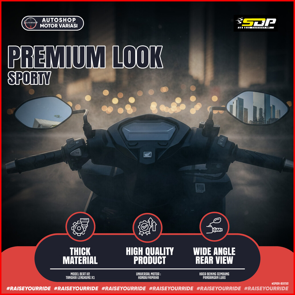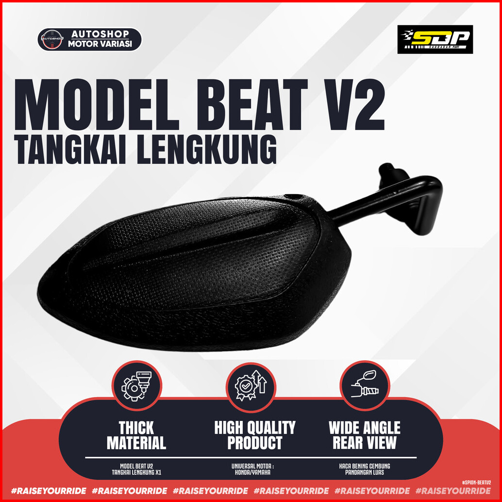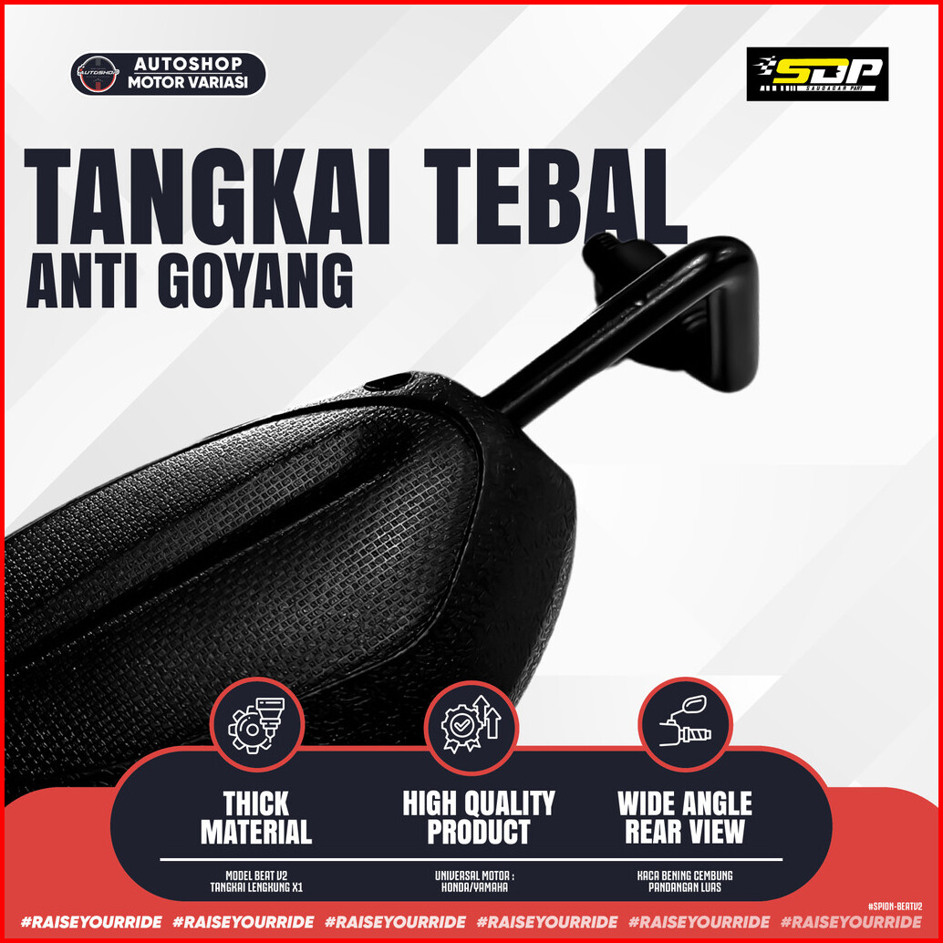Spion Beat V2 Daun Kaca Spion Model Standart Tangkai Tebal Model Sporty Kaca Bening Cembung Drat 14 Honda Pnp Semua Moto
