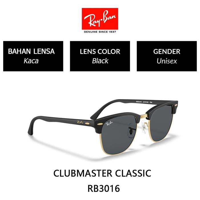 Asli Kacamata Hitam Ray-Ban Rb3016 Clubmaster Classic Sunglasses Lensa Kaca Pria Dan Wanita Original 100 PERSEN - Black Black,