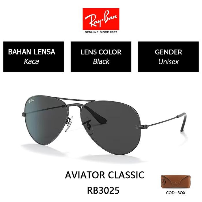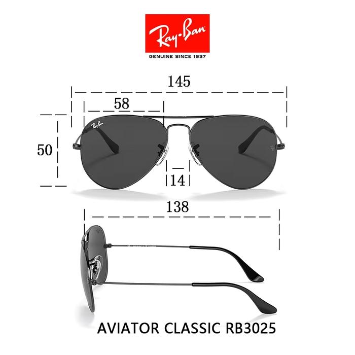 Asli Kacamata Hitam Ray-Ban Rb3025 Aviator Classic Sunglasses Lensa Kaca Pria Dan Wanita Original 100 PERSEN - Gold Black, 58