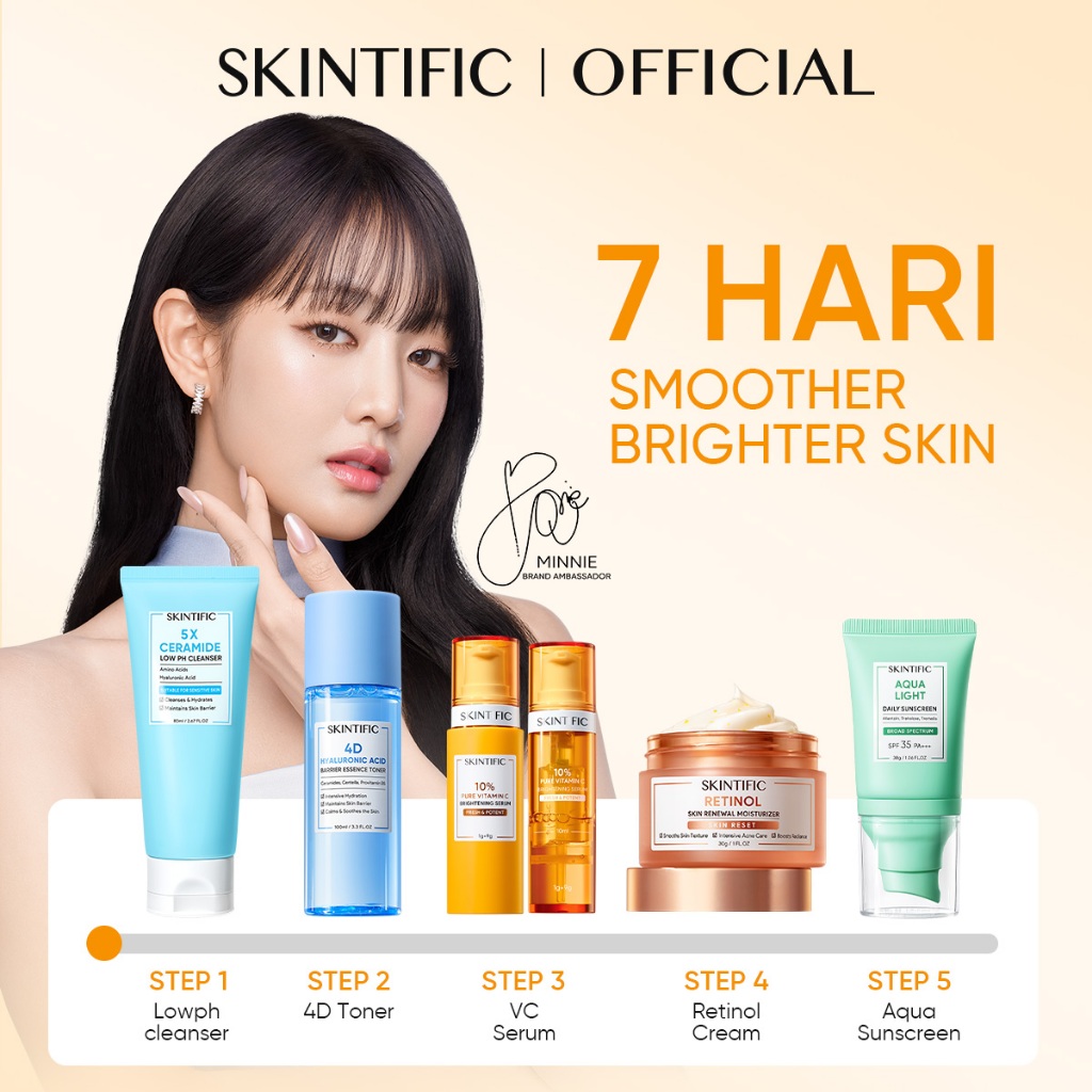 Skintific Official Store [5pcs!!] Full Series Set Skincare Wanita Glowing Bpom Skintific Moisturizer Sunscreen Serum