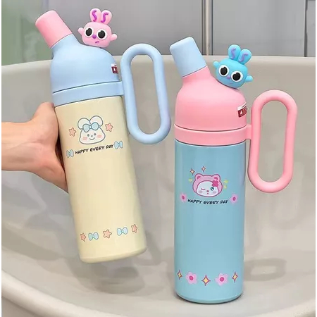 Tumbler Minum Stainless Steel 316 Termos Viral Lucu Happy Every Day Portable Vacuum Cup Dengan Gagang 800ml 2031
