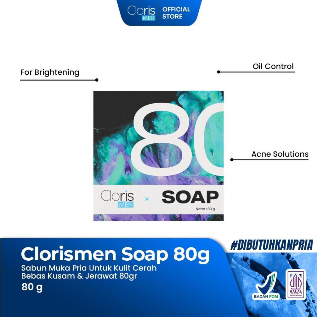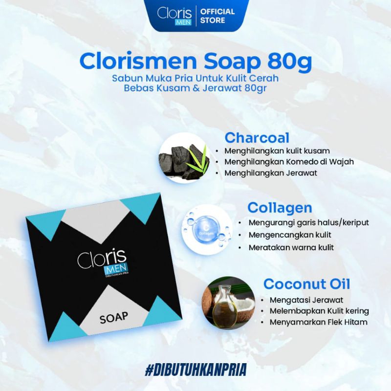 CLORIS MEN SOAP Clorismen 40 & 80 gr Original Asli Sabun Wajah Untuk Pria Pembersih Komedo Jerawat