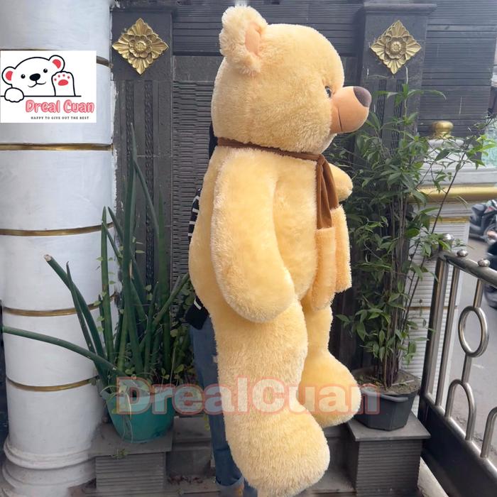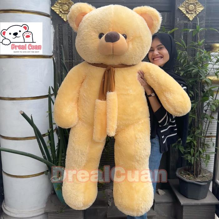 BONEKA TEDDY BEAR FLUFFY SYAL POLOS BESAR JUMBO 1,3 METER PREMIUM - MOCCA, 90CM