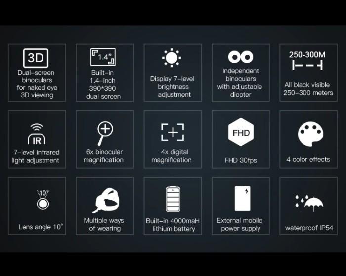 Nv8000 - 3D Night Vision Infrared Binoculars 4X Zoom - 1080P Recording