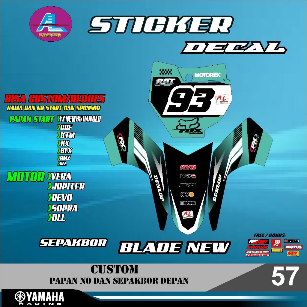 STICKER DECAL PAPAN NOMOR START+SPAKBOR DEPAN BLADE NEW MOTOR CRF KLX 150 KLX BF KLX GORDON DTRACKER KX YZ KTM VIAR WR 155 SUPERMOTO RBT NEW TERBARU TERKECE