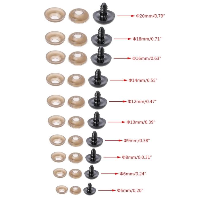 [SET 10PCS] BLACK SAFETY EYES DOLL/MATA BONEKA AMIGURUMI BULAT HITAM - TUSUK, ROUND,12MM