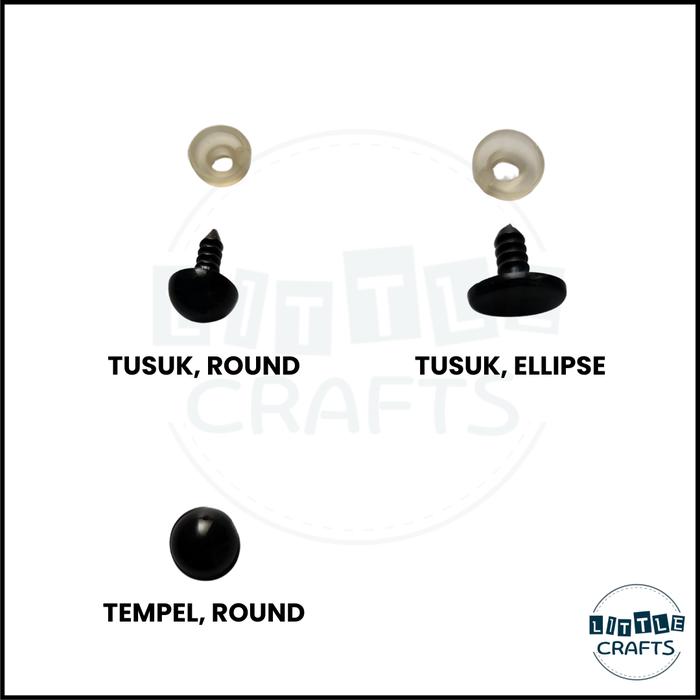 [SET 10PCS] BLACK SAFETY EYES DOLL/MATA BONEKA AMIGURUMI BULAT HITAM - TUSUK, ROUND,12MM