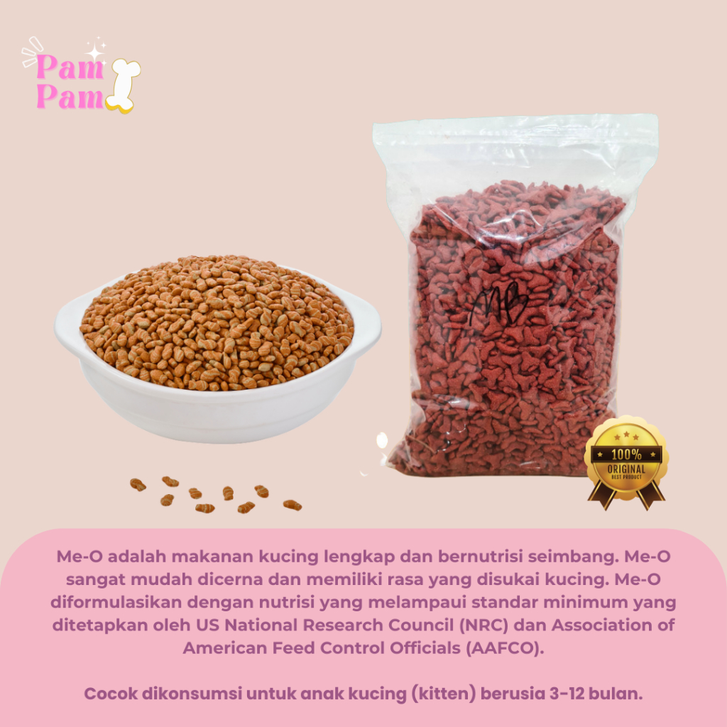 Meo Repack 1kg Pakan Kucing D3W4SA Kitten Adult Persian Makanan Kering Me-O 1 Kg Cat Dry Food