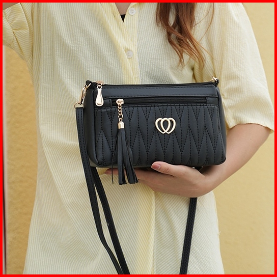 Tas Selempang Wanita Murah Fashion Nikesa Ta857b5 Sling Bag Korea Pesta Kulit Hitam Cewek Remaja Kekinian Simple Casual