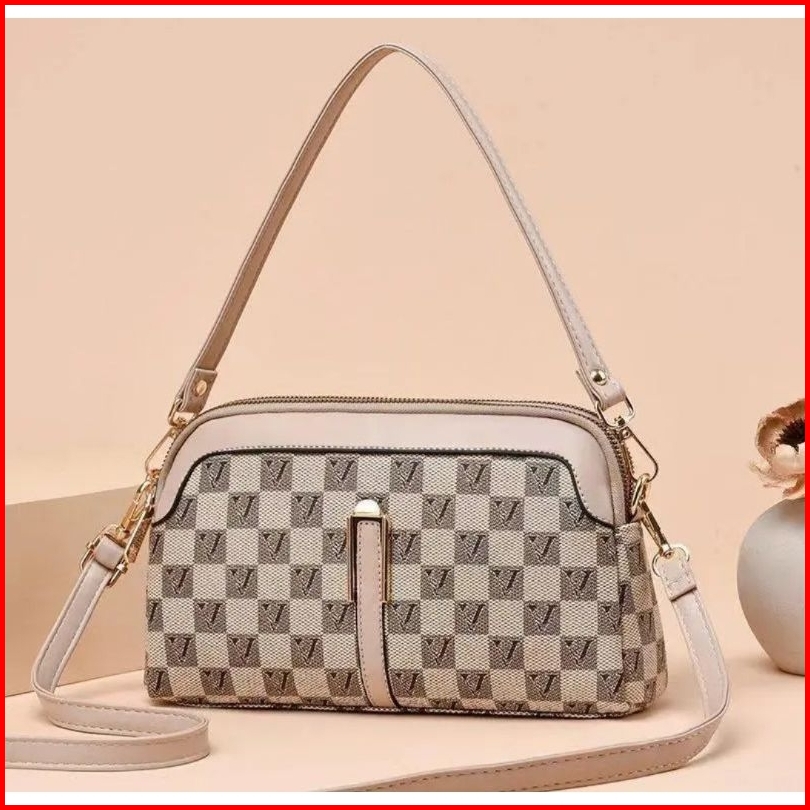 Margaret Tas Selempang Wanita Dua Tali Dua Ruang Kulit Pu 24cm Tas Wanita Slingbag Terbaru