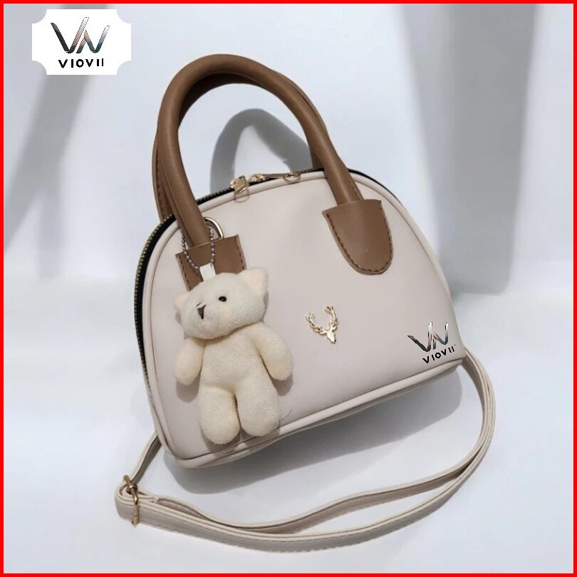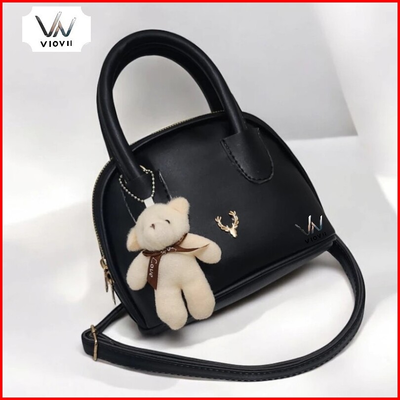 Tas Selempang Wanita Korean Style Dengan Boneka Beruang Miyuka Bag Handbag Tas Jinjing Bahan Kulit
