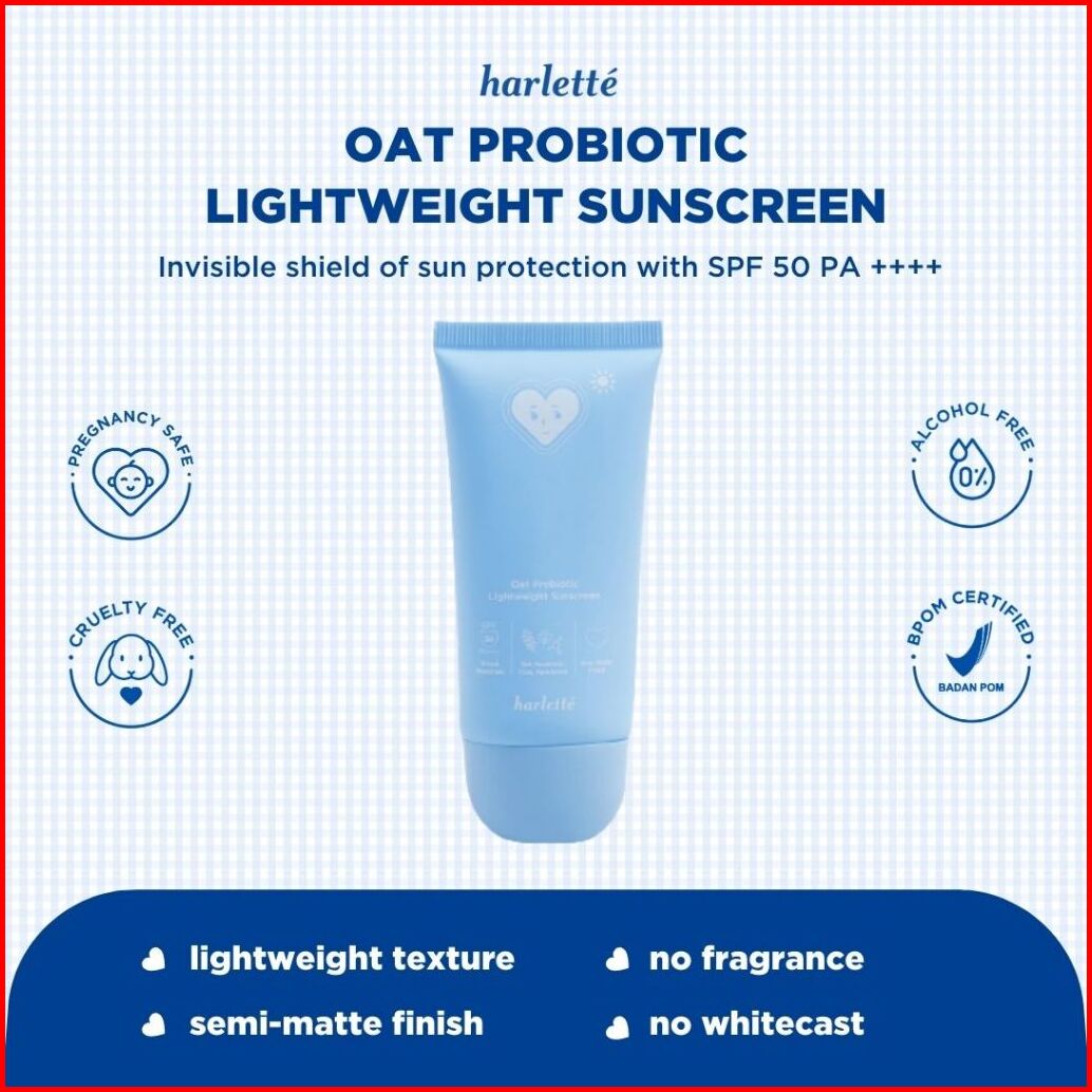 Harlette Oat Probiotic Lightweight Sunscreen Spf 50 Pa Sensitive Acne Prone Uv Protection Skin Barrier Melindungi Wajah