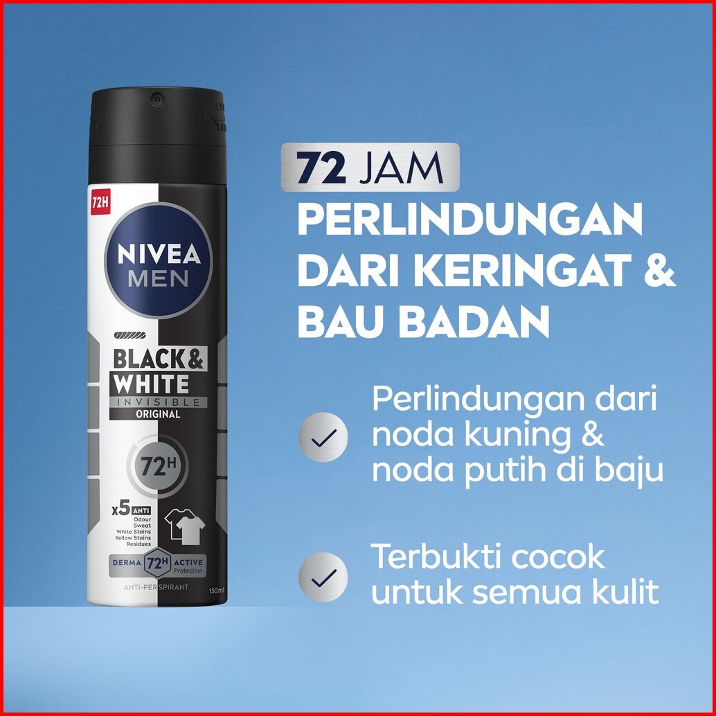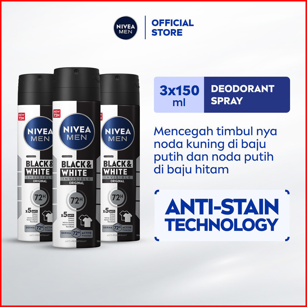 Paket Hemat Isi 3 Nivea Men Deodorant Spray Black White Invisible Original 150ml - Deodoran Semprot Pria Melawan Bakteri