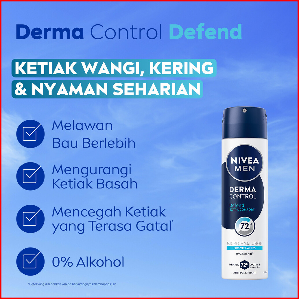 Nivea Men Deodorant Spray Derma Control Defend 150ml - Deodoran Semprot Pria Skin Barrier Kulit Ketiak Sensitif Anti Ker