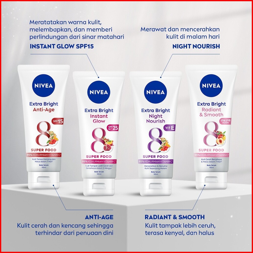 Nivea InstanGlow 180, Nivea Anti Age 180ml, Nivea Crprotec 180ml, Nivea Night Serum180, Serum RdiantSmoth