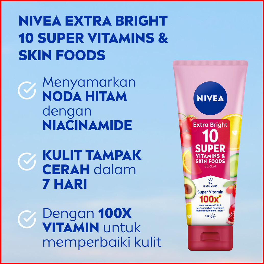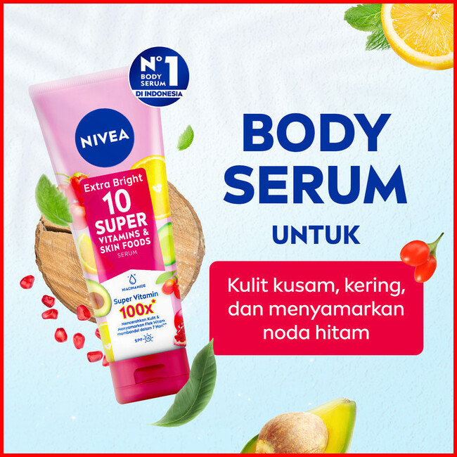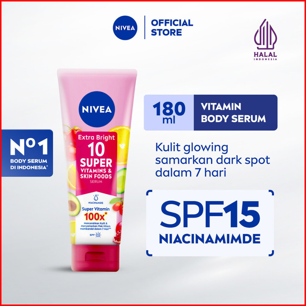 Nivea Body Serum Extra Bright 10 Super Vitamins Spf15 180ml - Hand Body Serum Lotion Moisturizer Menyamarkan Noda Flek H