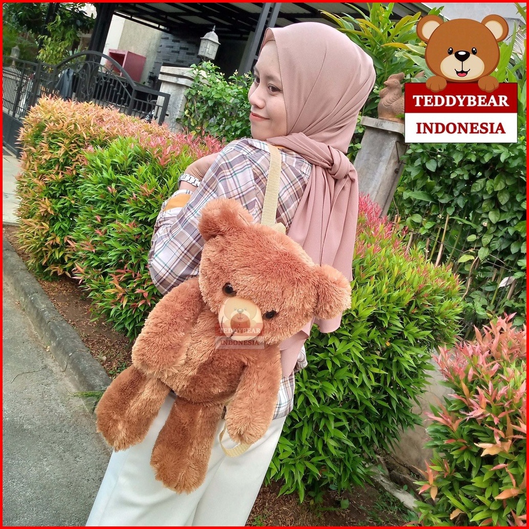 Tas Ransel Beruang Teddy Bear Labubu Bahan Bulu Lucu Ransel Wanita Karakter Boneka