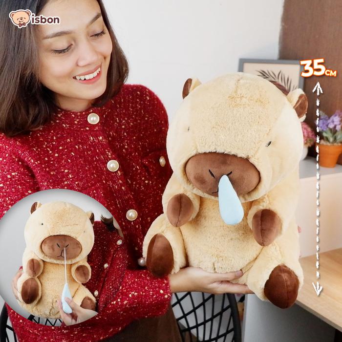 ISTANA BONEKA BERANG BERANG SIT CAPYBARA 14IN LUCU MAINAN ANAK HADIAH ULANG TAHUN COWOK CEWEK SQUISHY PREMIUM - WITH BREAD, 14IN 35CM