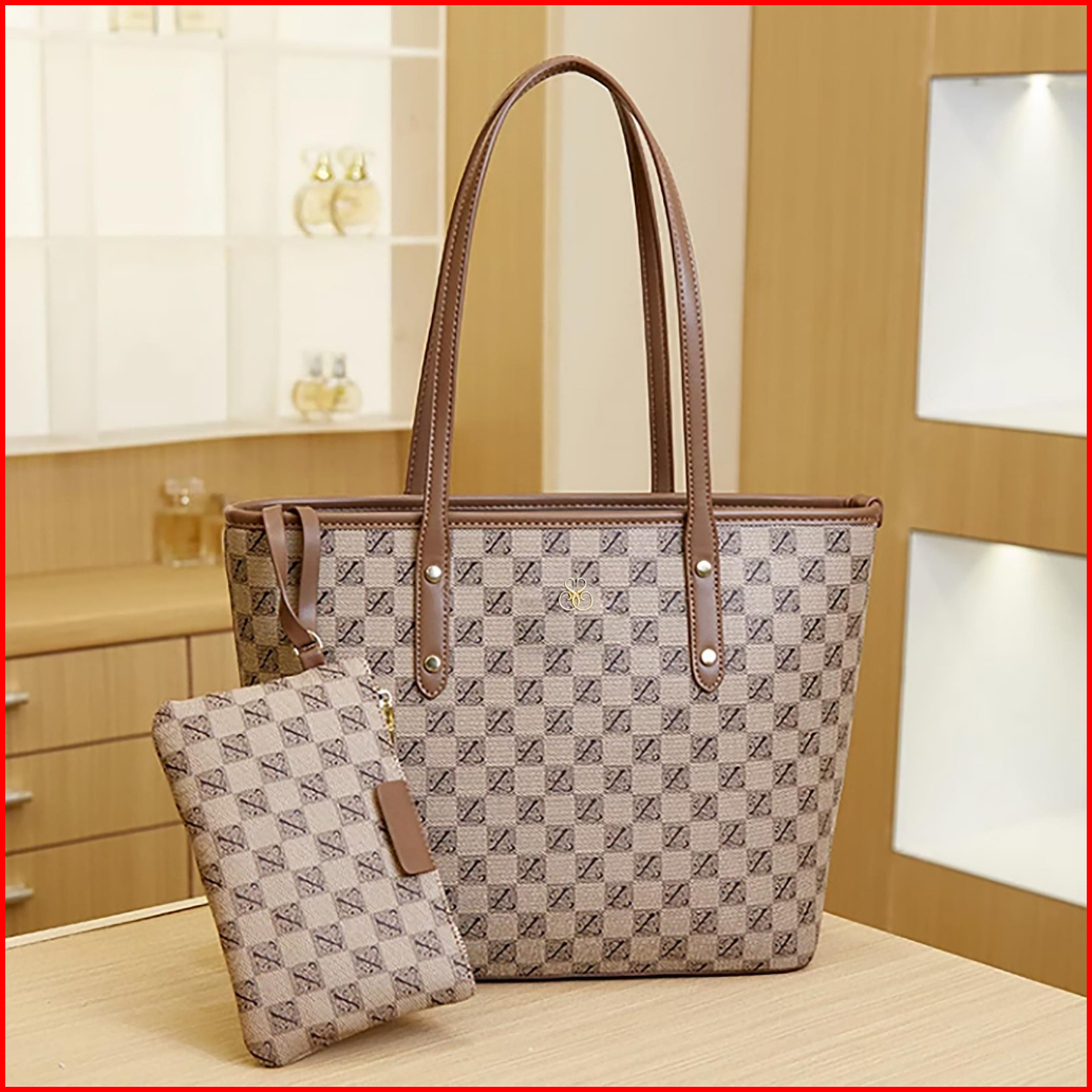 Sweetsally - Zola Tote Bag Dompet Pouch Tas Kantor Cewek Korea Besar Kulit Pu