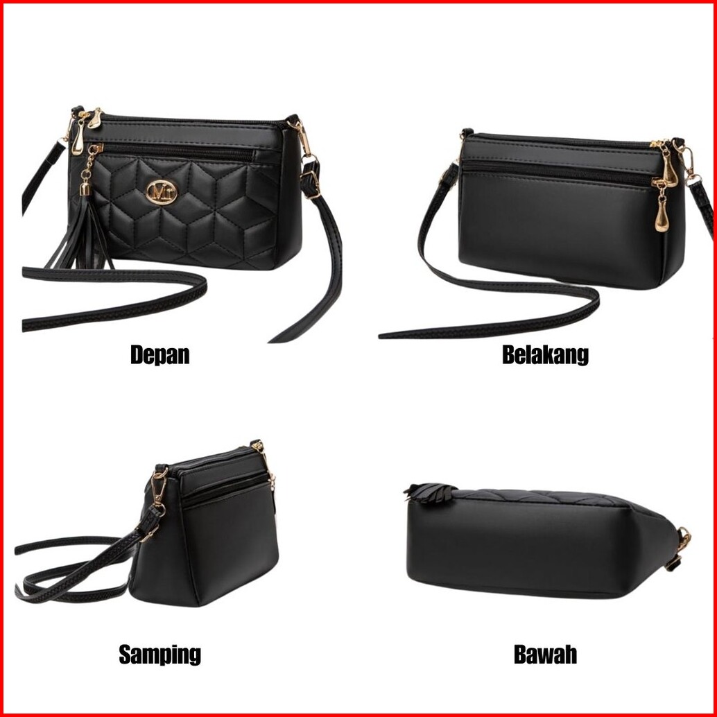 Tas Selempang Wanita Sling Bag Korea Kulit Hitam Ambergia Premium Shoulder Bahu Remaja Cewek Murah Kekinian Lucu Fashion