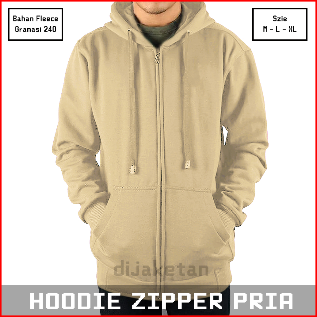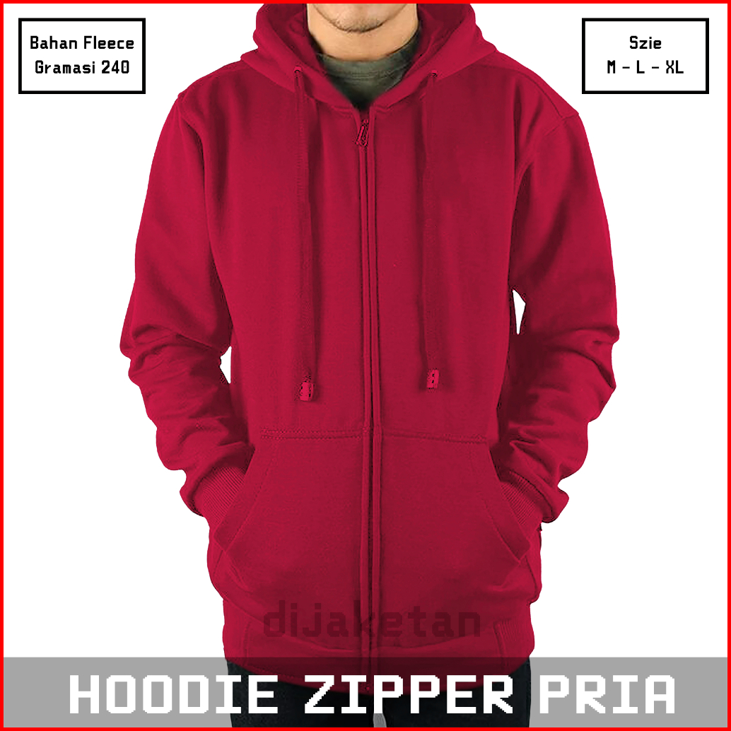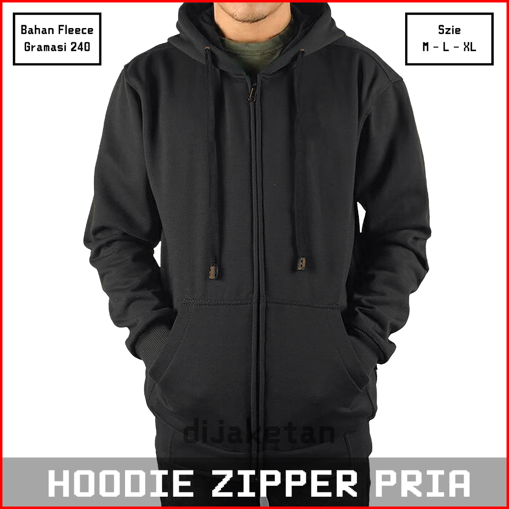 Dijaketan Hoodie Zipper Pria Polos Restleting Bahan Fleece Warna Hitam Navy Maroon Denim Coksu Size M L Xl